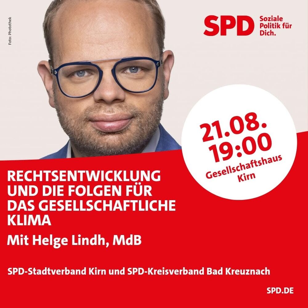 Wir freuen uns sehr, dass wir die Veranstaltung nachholen können und laden Euch ganz herzlich am 21.08.24 um 19:00 Uhr ins Gesellschaftshaus nach Kirn ein. Die Kommunal- und Europawahl am 09.06.24 hat den Rechtsruck deutlich gemacht, auch im Kirner Land! Die bundesweiten "Demos gegen Rechts" haben dennoch gezeigt, wie viele Menschen sich für den Erhalt unserer Demokratie einsetzen. Das war ein gutes Zeichen und darauf müssen wir aufbauen.