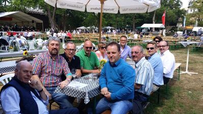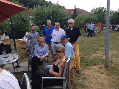Schnappschuss auf dem „Jubiläumssommerfest“ der Lebenshilfe: OB Dr. Heike Kaster-Meurer, SPD-Vorsitzender Günter Meurer, Stadtrat Yunus Senel, Sonja Miedl und Gernot Bach in froher Runde mit dem Vorsitzenden der Lebenshilfe Kreisvereinigung und Verwaltungsratsvorsitzenden der Lebenshilfe Werkstätten eGmbH und dem Vorgänger von Martina Hassel, Geschäftsführer der Kreisvereinigung Günther Hogl.